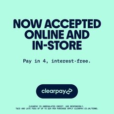 Yay! We’ve partnered with Clearpay so you can now pay in 4 whenever you shop with us/[insert brand name]. Just choose Clearpay when you checkout, then pay it in 4 interest-free instalments. Clearpay is unregulated credit. Use responsibly. T&Cs & late fees up to £24 per purchase apply clearpay.co.uk/terms 🙌 @clearpay_uk