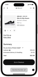 Select Credit or Debit card, then tap the Buy Now. Pay Later button. Confirm your order amount and payment schedule.