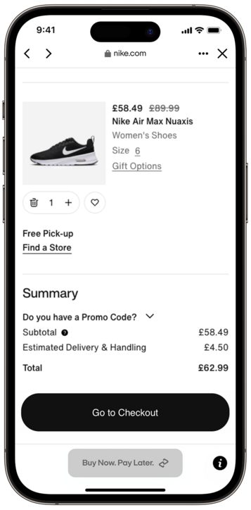 Select Credit or Debit card, then tap the 'Buy Now. Pay Later' button. Confirm your order amount and payment schedule.