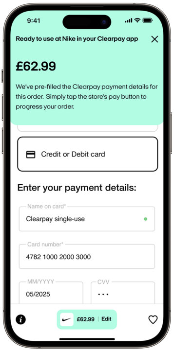 Check out with Clearpay